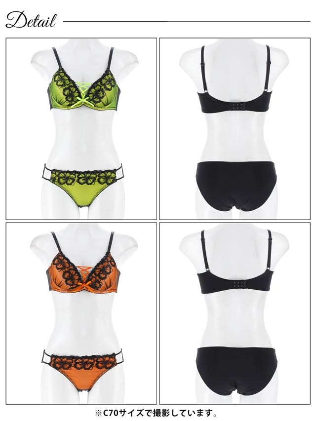 ネオンフラワースピンドル育乳脇高ブラジャー&フルバックショーツ[激売れ]