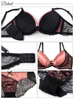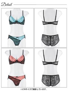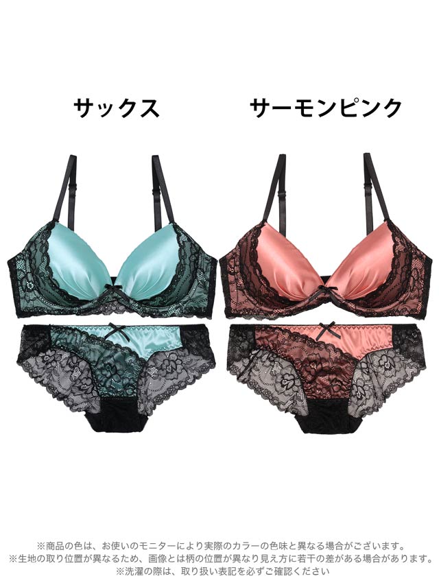 ノーブルサテンレース育乳脇高ブラジャー&バック透けフルバックショーツ[激売れ]
