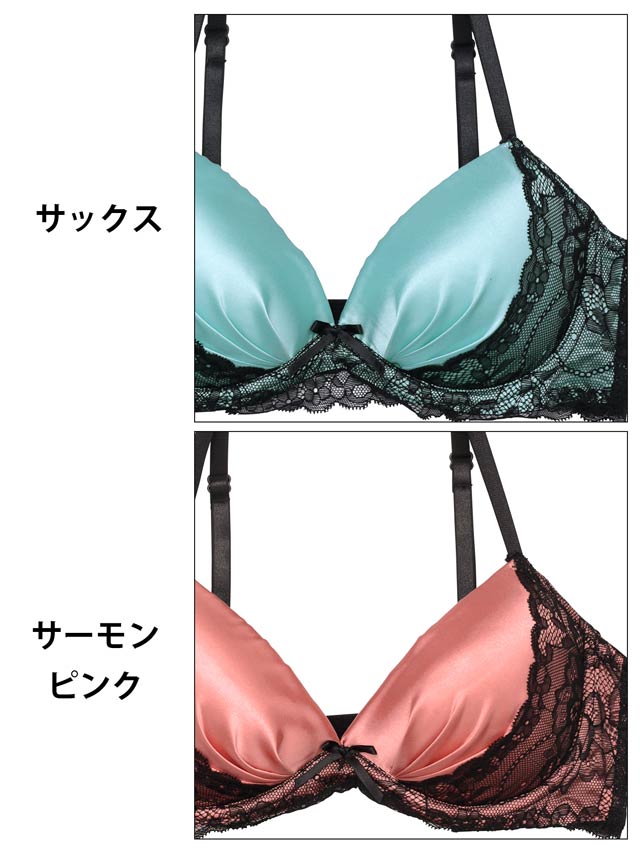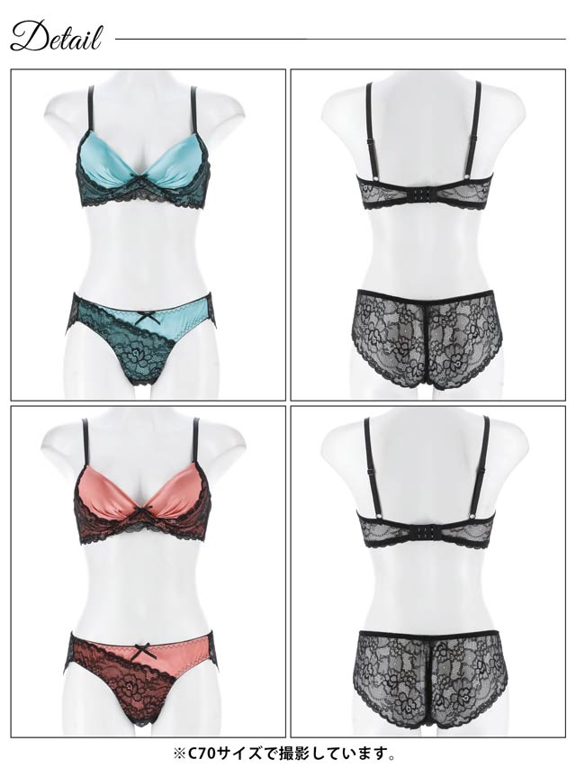【EFサイズ】ノーブルサテンレース育乳脇高ブラジャー&バック透けフルバックショーツ[大人気]