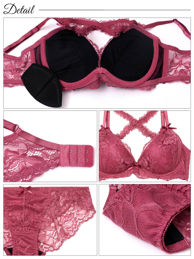 オールレースカットストリング育乳脇高ブラジャー&バック透けフルバックショーツ