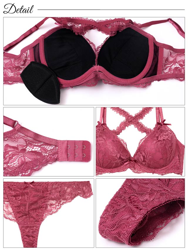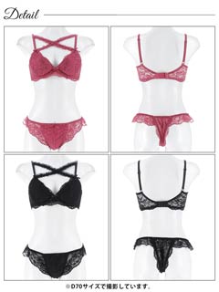 オールレースカットストリング育乳脇高ブラジャー&バック透けフルバックショーツ