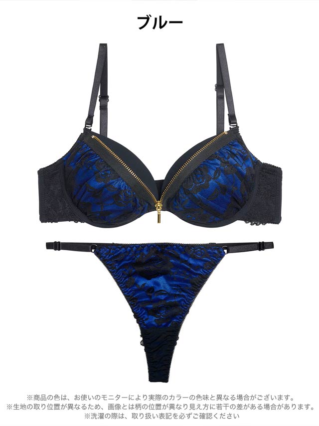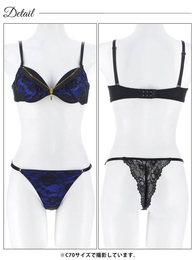 12/19新作!ロージーレースファスナーブラジャー&バック透けTバックショーツ[激売れ]
