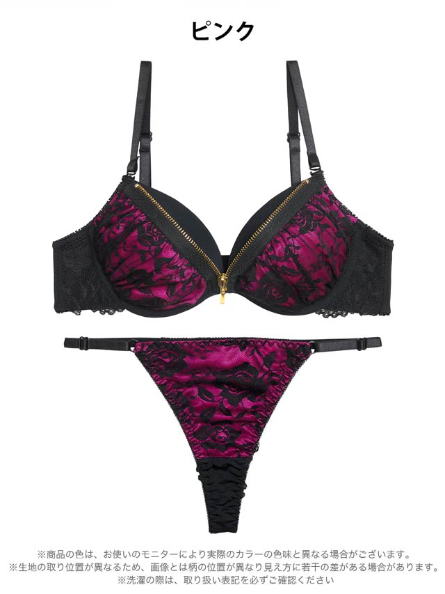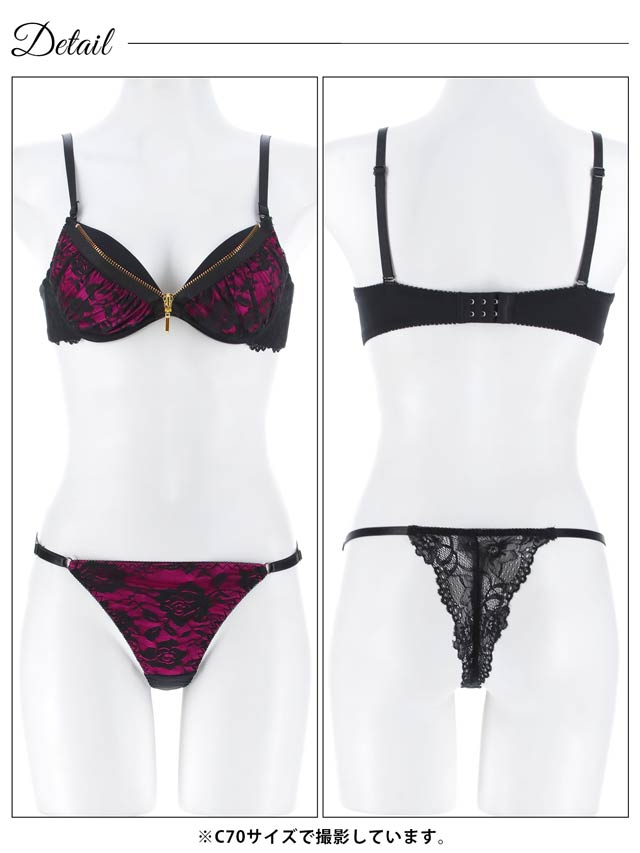 12/19新作!【EFサイズ】ロージーレースファスナーブラジャー&バック透けTバックショーツ[大人気]