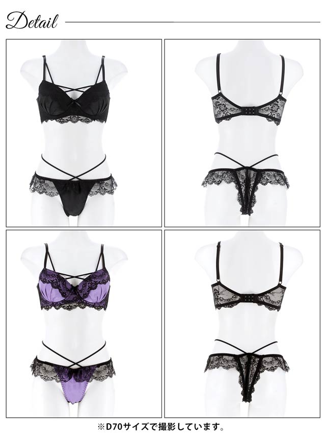 オールレースカットストリング育乳脇高ブラジャー&バック透けフルバックショーツ