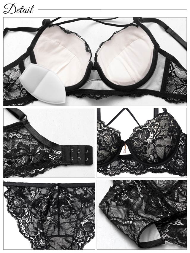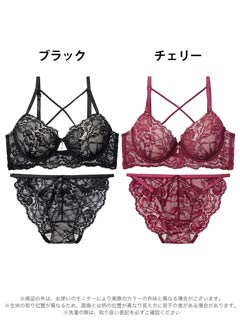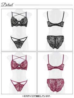 オールレースカットストリング育乳脇高ブラジャー&バック透けフルバックショーツ