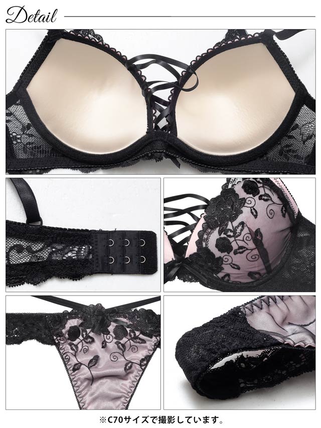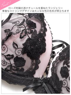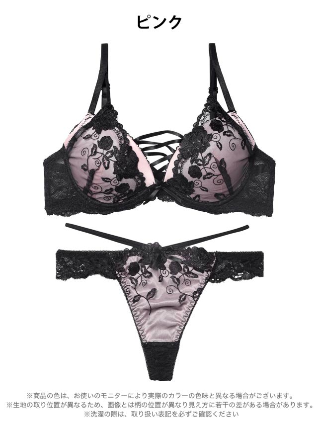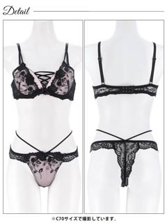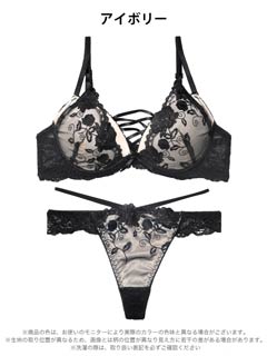 12/12新作!ノワールフラワーレースアップブラジャー&バック透けTバックショーツ[激売れ]