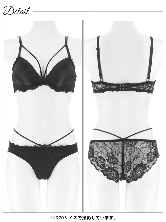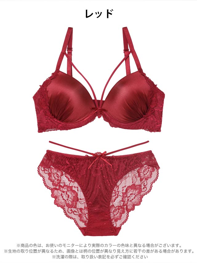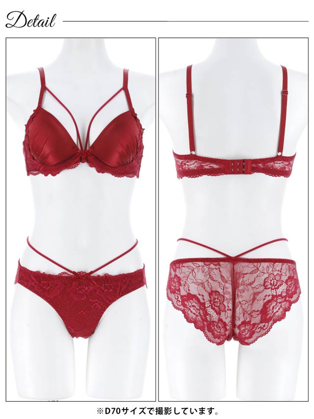 オールレースカットストリング育乳脇高ブラジャー&バック透けフルバックショーツ