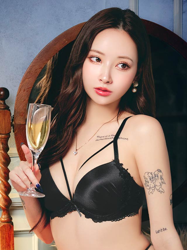 【Reinest】グラマラスサテンコードブラジャー&バック透けTバックショーツ[大人気]