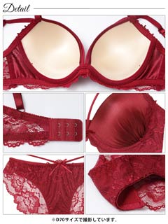 オールレースカットストリング育乳脇高ブラジャー&バック透けフルバックショーツ