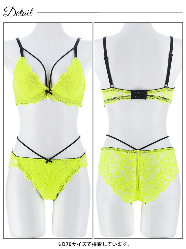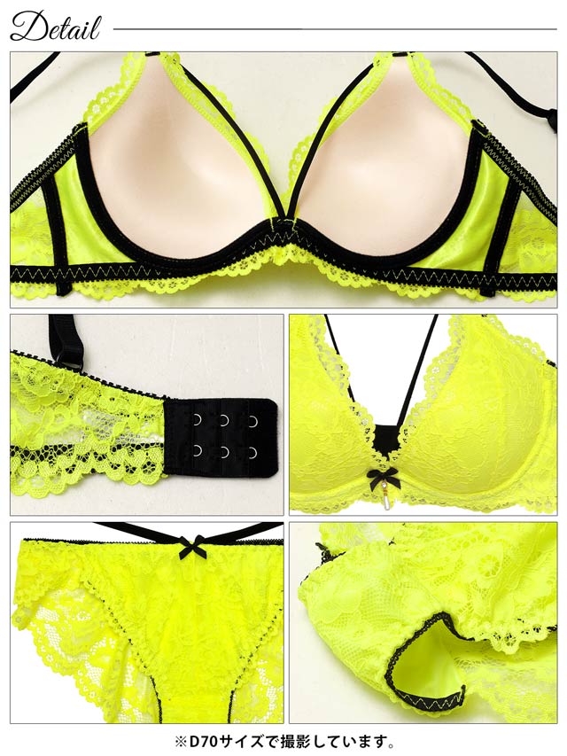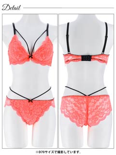 2/11新作!【EFサイズ】ネオンカラーレースコードブラジャー&バック透けフルバックショーツ[大人気]