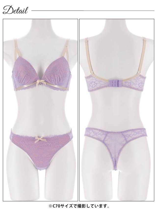 オールレースカットストリング育乳脇高ブラジャー&バック透けフルバックショーツ