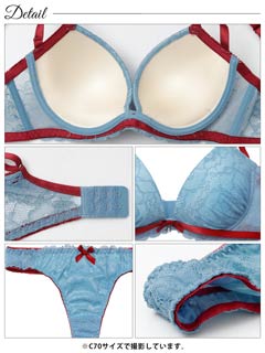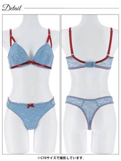 3/4新作!バイカラーリボンレース育乳脇高ブラジャー&バック透けTバックショーツ[激売れ]