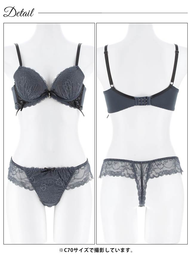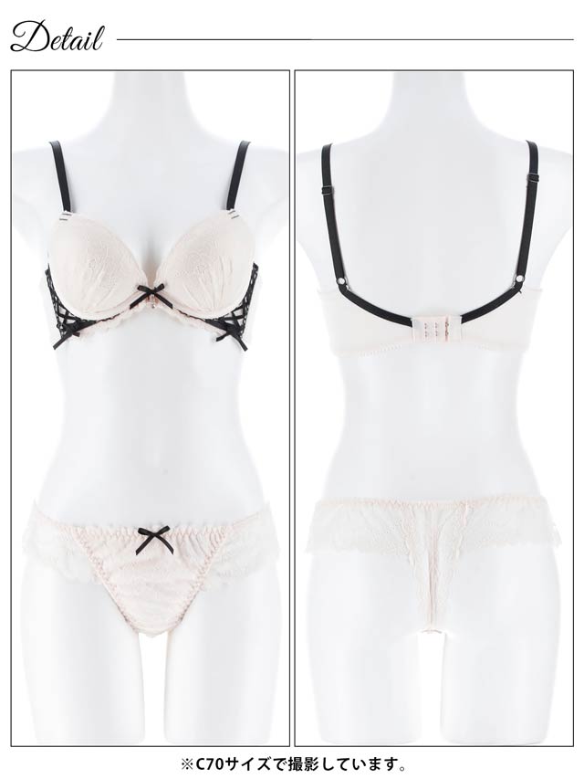 4/22新作!スピンドルリボンレース育乳脇高ブラジャー&バック透けTバックショーツ[激売れ]