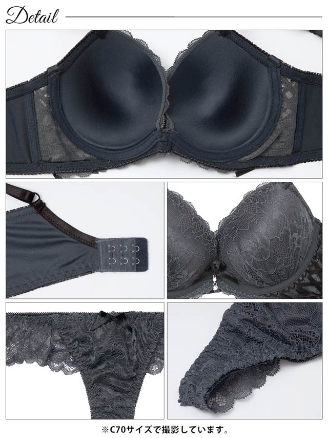 大判フラワー総レース育乳脇高ブラジャー&バック透けフルバックショーツ