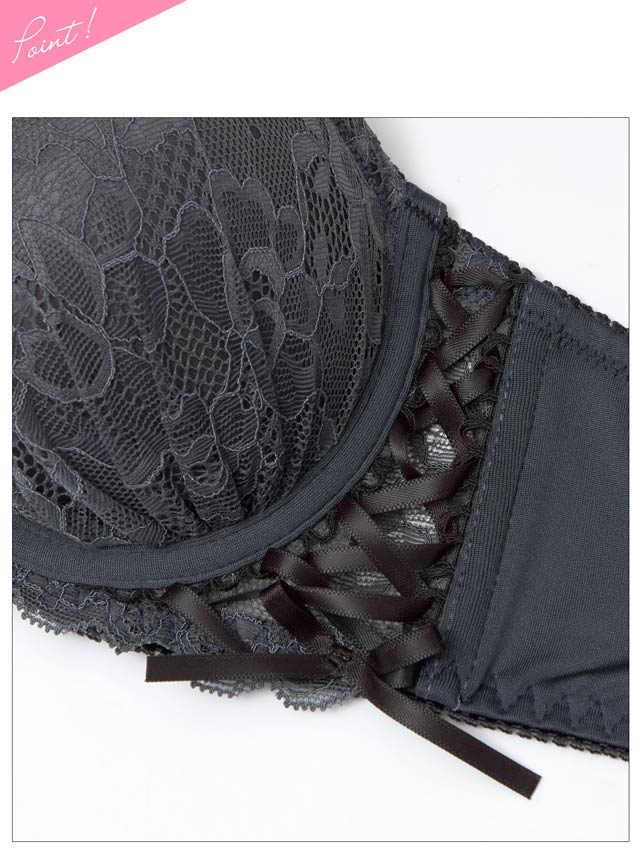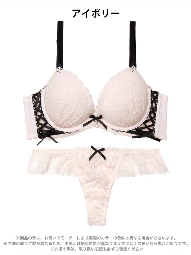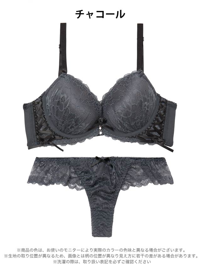 4/22新作!【EFサイズ】スピンドルリボンレース育乳脇高ブラジャー&バック透けTバックショーツ[大人気]