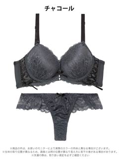 大判フラワー総レース育乳脇高ブラジャー&バック透けフルバックショーツ