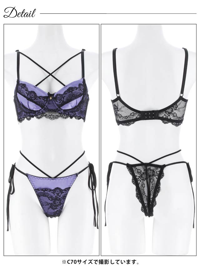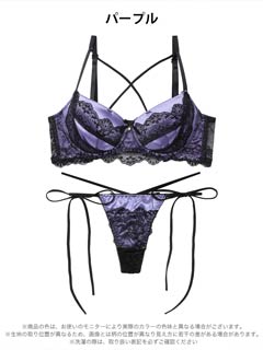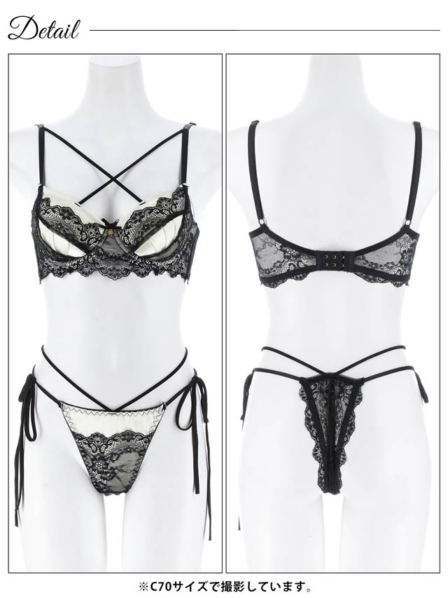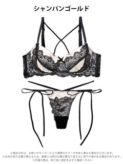 オールレースカットストリング育乳脇高ブラジャー&バック透けフルバックショーツ