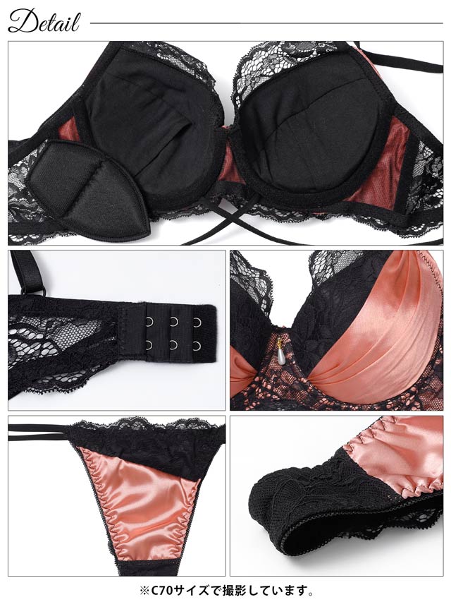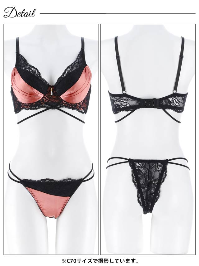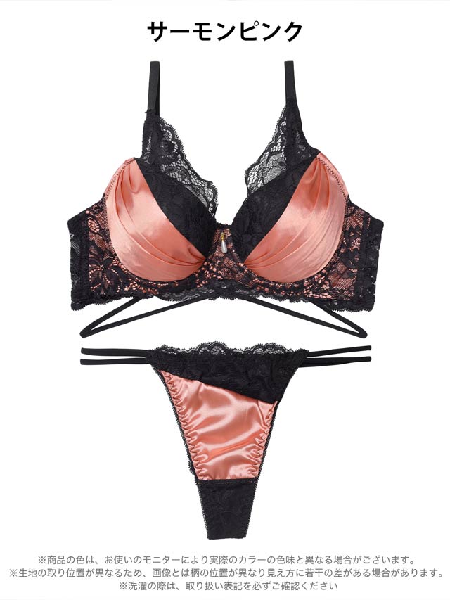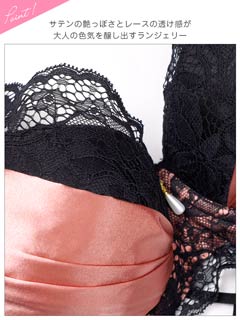 12/15新作!グロッシーサテンレース育乳脇高ブラジャー&バック透けTバックショーツ[激売れ]
