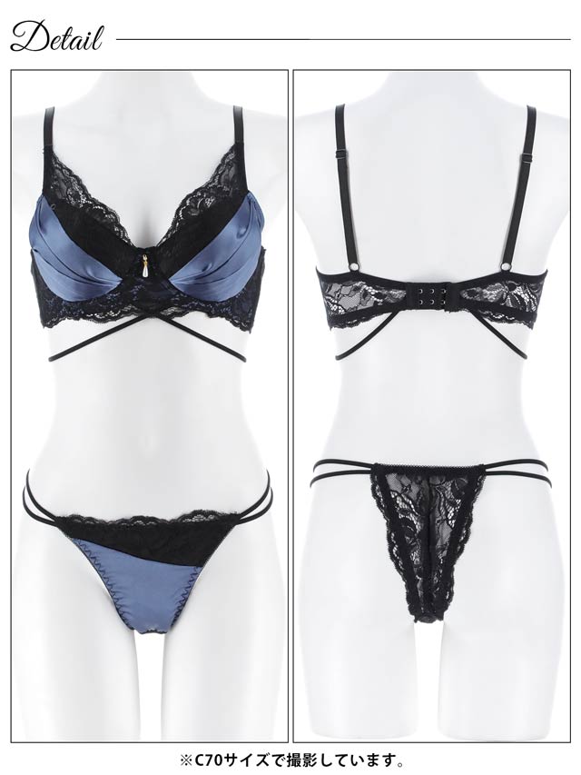 12/15新作!【EFサイズ】グロッシーサテンレース育乳脇高ブラジャー&バック透けTバックショーツ[大人気]
