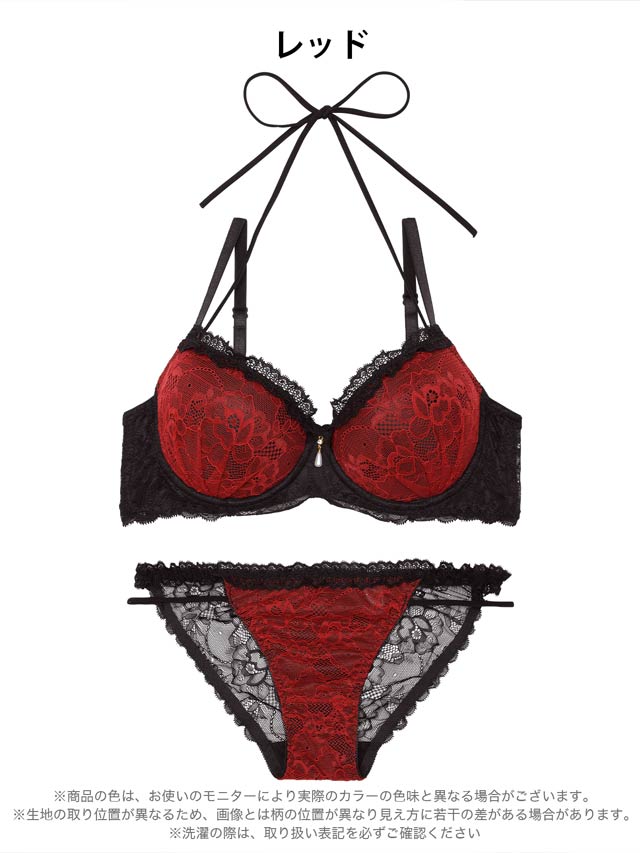 1/28新作!【EFサイズ】ブルームレーシィホルターネックブラジャー&バック透けフルバックショーツ[大人気]