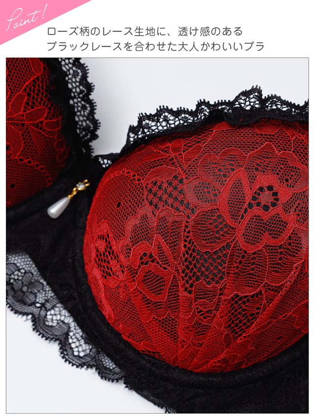 ブロッサムギャザーレース育乳脇高ブラジャー&バック透けフルバックショーツ