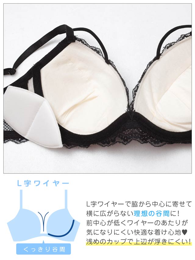 ブロッサムギャザーレース育乳脇高ブラジャー&バック透けフルバックショーツ