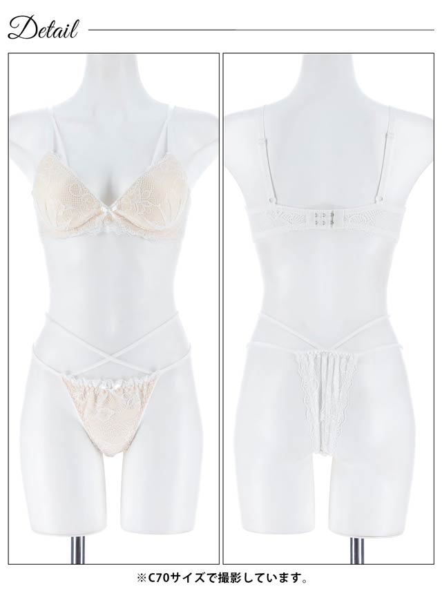 オールレースカットストリング育乳脇高ブラジャー&バック透けフルバックショーツ