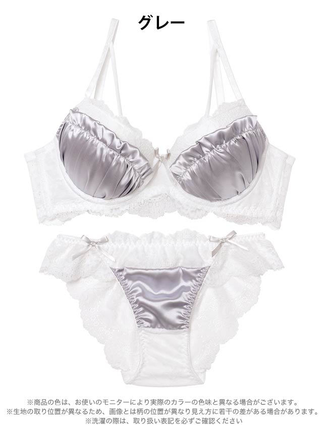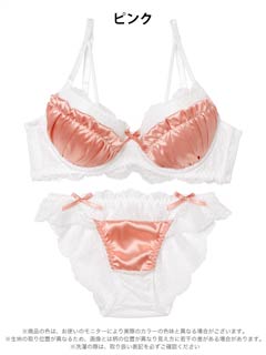 2/2新作!スウィートサテンレース育乳脇高ブラジャー&バック透けフルバックショーツ[激売れ]
