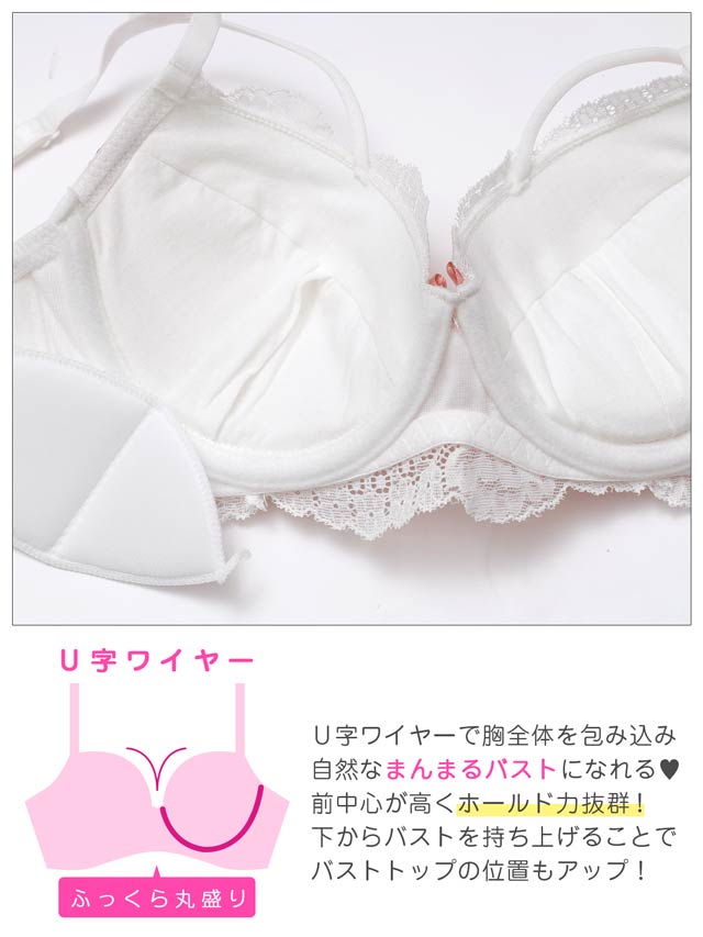 ブロッサムギャザーレース育乳脇高ブラジャー&バック透けフルバックショーツ