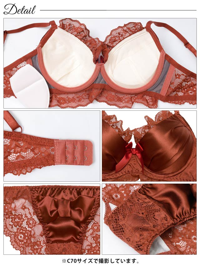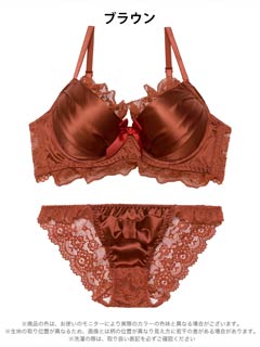 1/26新作!【EFサイズ】ロマンティックリボンサテン育乳脇高ブラジャー&バック透けフルバックショーツ[大人気]