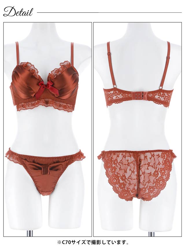 1/26新作!ロマンティックリボンサテン育乳脇高ブラジャー&バック透けフルバックショーツ[激売れ]