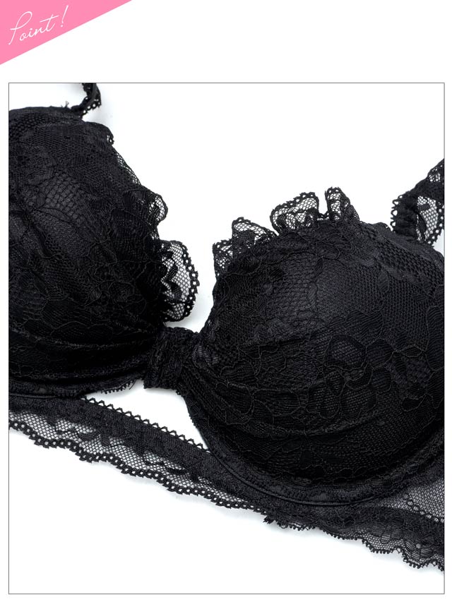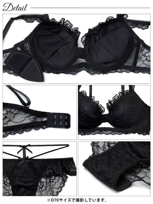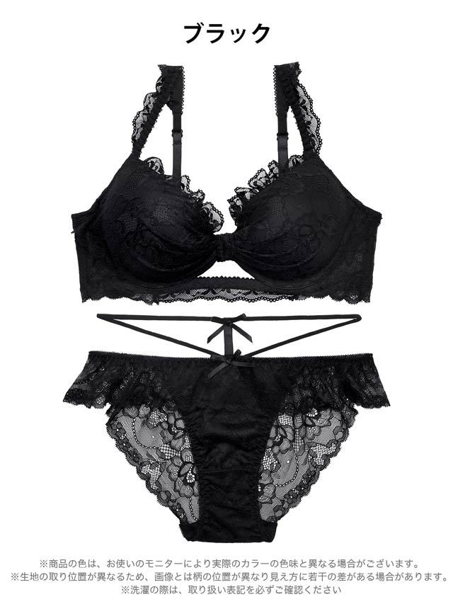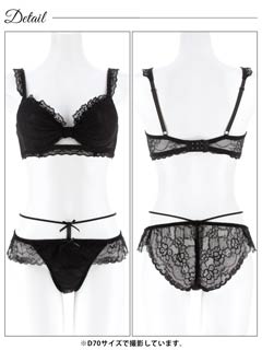 大判フラワー総レース育乳脇高ブラジャー&バック透けフルバックショーツ