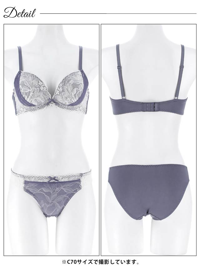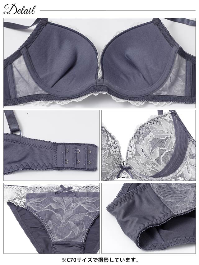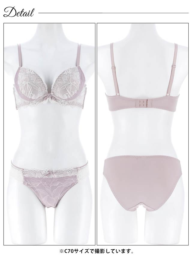 オールレースカットストリング育乳脇高ブラジャー&バック透けフルバックショーツ