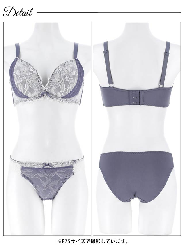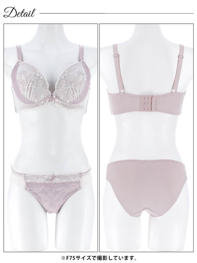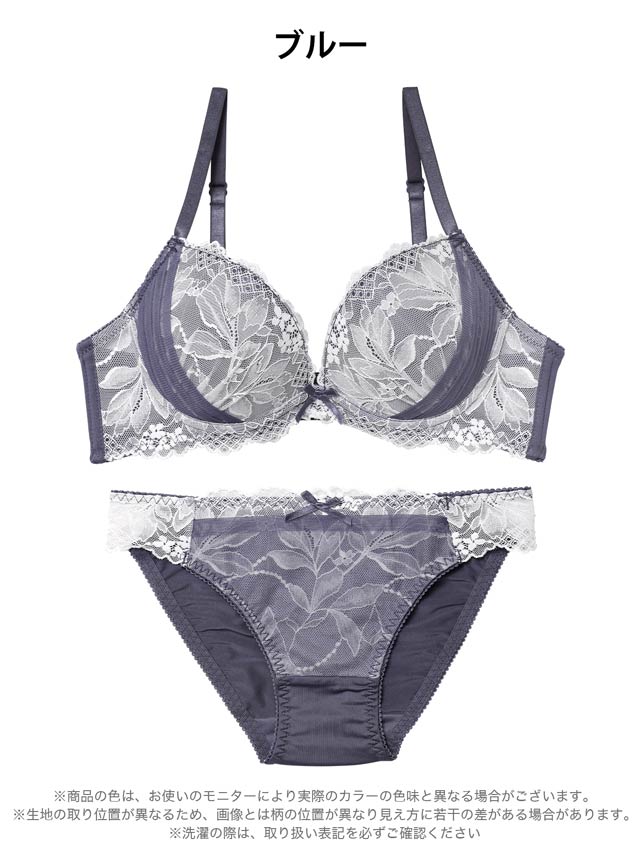 1/5新作!【EFサイズ】ボタニカルレースチュールブラジャー&フルバックショーツ[大人気]