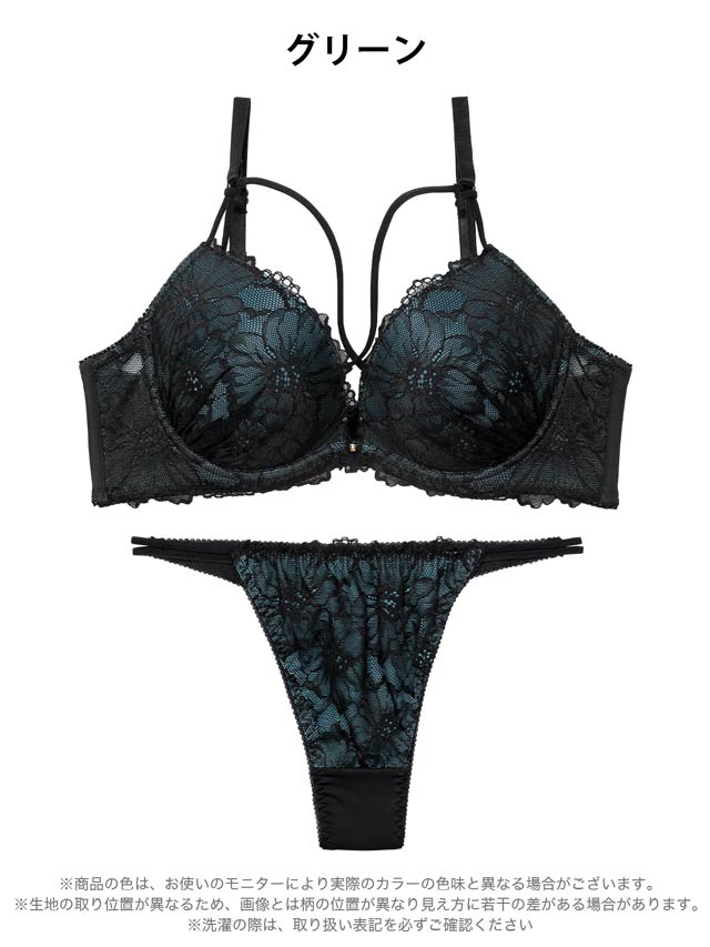 オールレースカットストリング育乳脇高ブラジャー&バック透けTバックショーツ