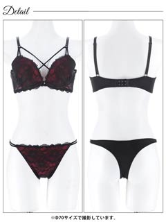 1/17再販!オールレースカットストリング育乳脇高ブラジャー&バック透けフルバックショーツ[激売れ]