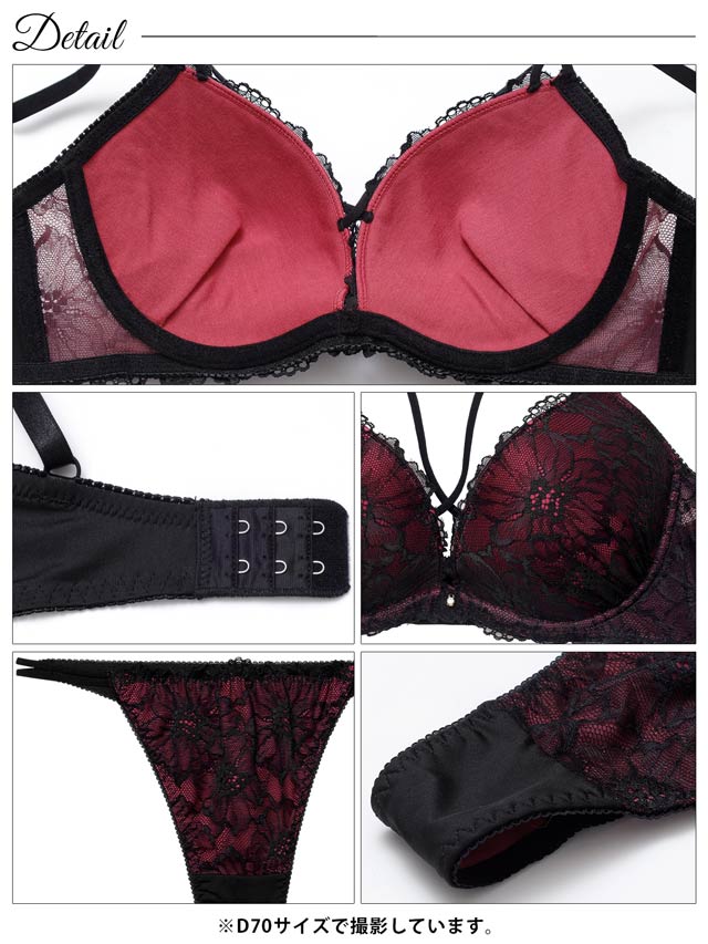 オールレースカットストリング育乳脇高ブラジャー&バック透けフルバックショーツ
