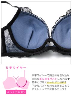 ノーブルレーシィホール育乳脇高ブラジャー&バック透けフルバックショーツ