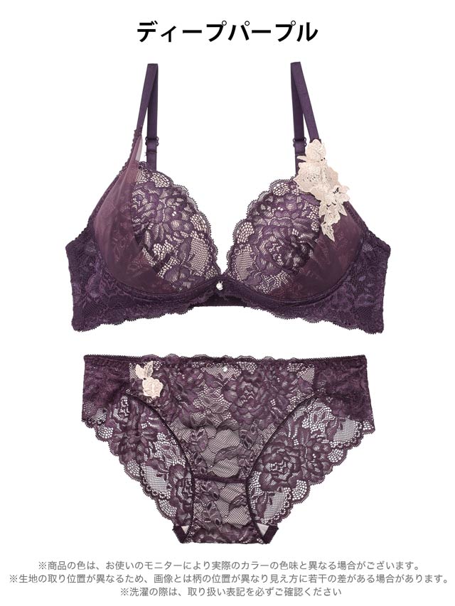 12/2再販!【三上悠亜着用】エレガンスフラワー刺繍ブラジャー&フルバックショーツ[激売れ]
