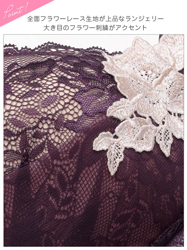 グロッシィフラワーエンブロイダリー育乳脇高ブラジャー&Tバックショーツ