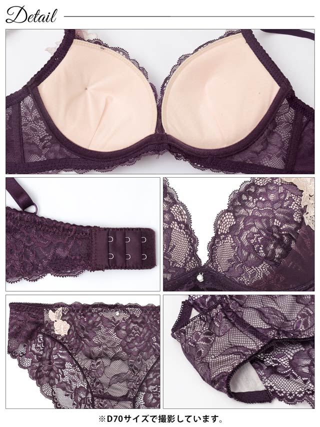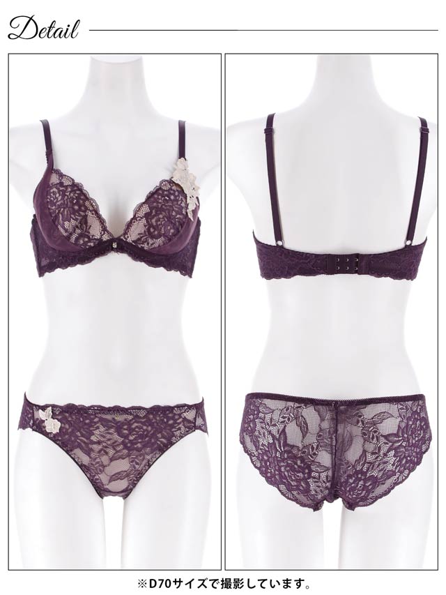 フロレゾンローズレース育乳脇高ブラジャー&サイド紐バック透けフルバックショーツ