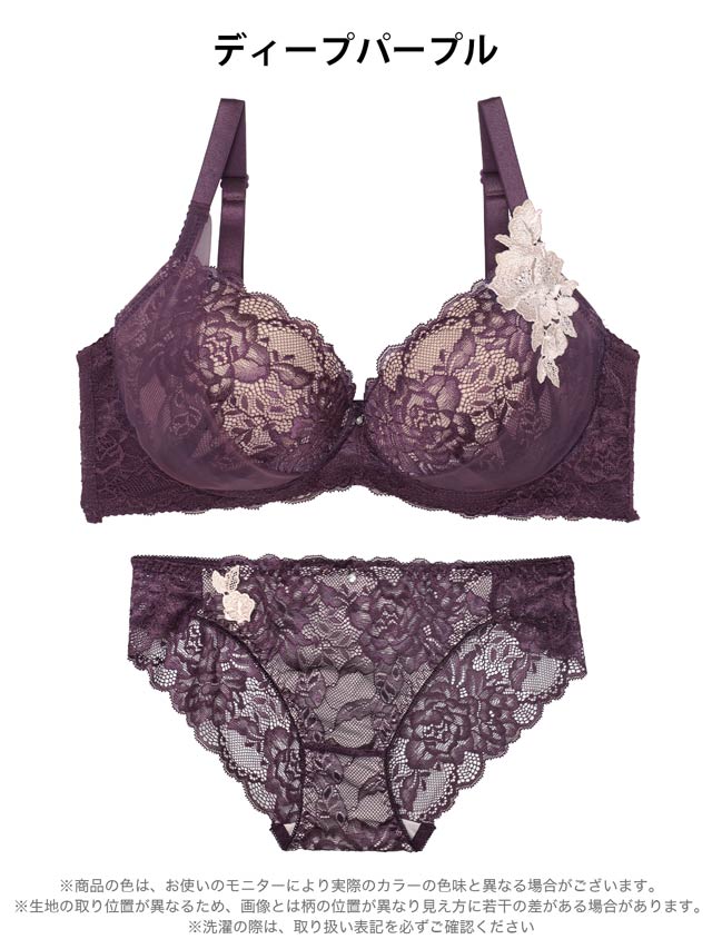 12/2再販!【三上悠亜着用】エレガンスフラワー刺繍ブラジャー&フルバックショーツ[激売れ]