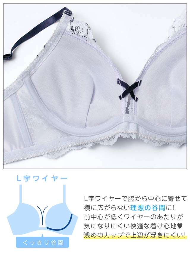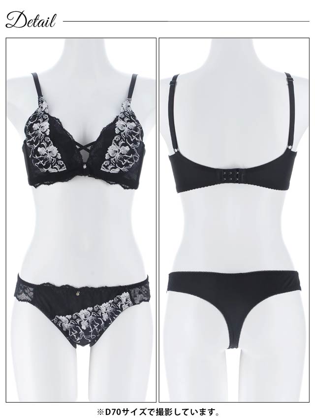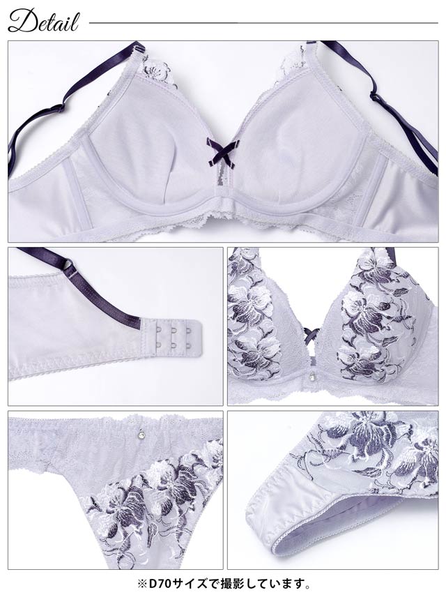 ダスティブルームエンブロイダリー育乳脇高ブラジャー&バック透けフルバックショーツ