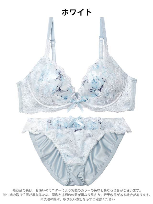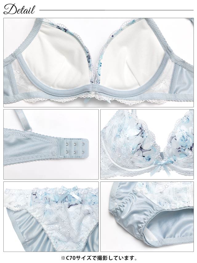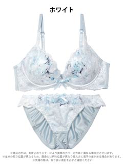 ダスティブルームエンブロイダリー育乳脇高ブラジャー&バック透けフルバックショーツ