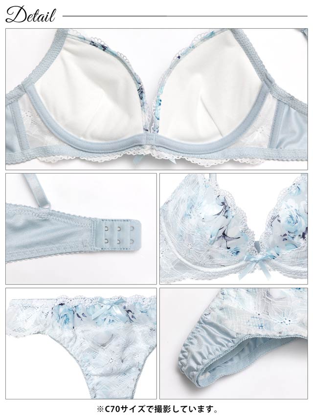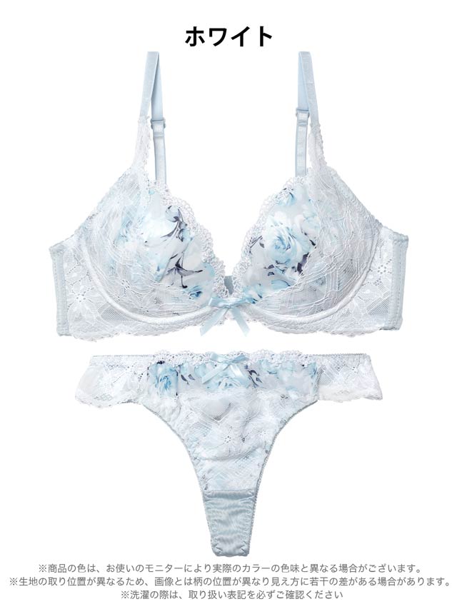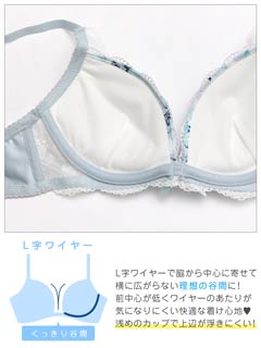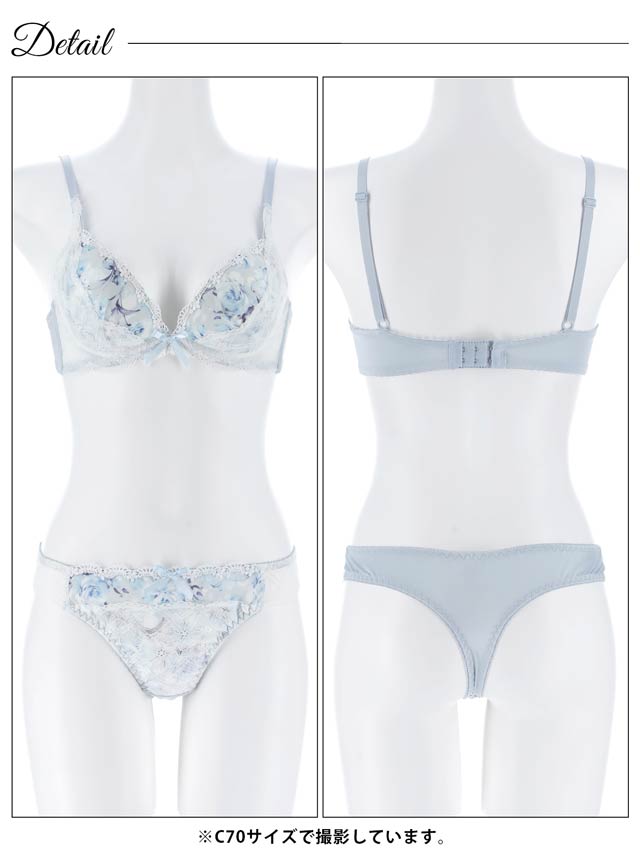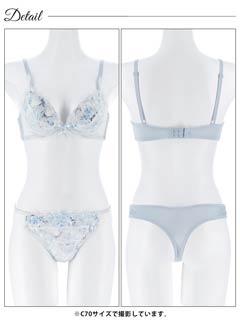 ダスティブルームエンブロイダリー育乳脇高ブラジャー&バック透けフルバックショーツ