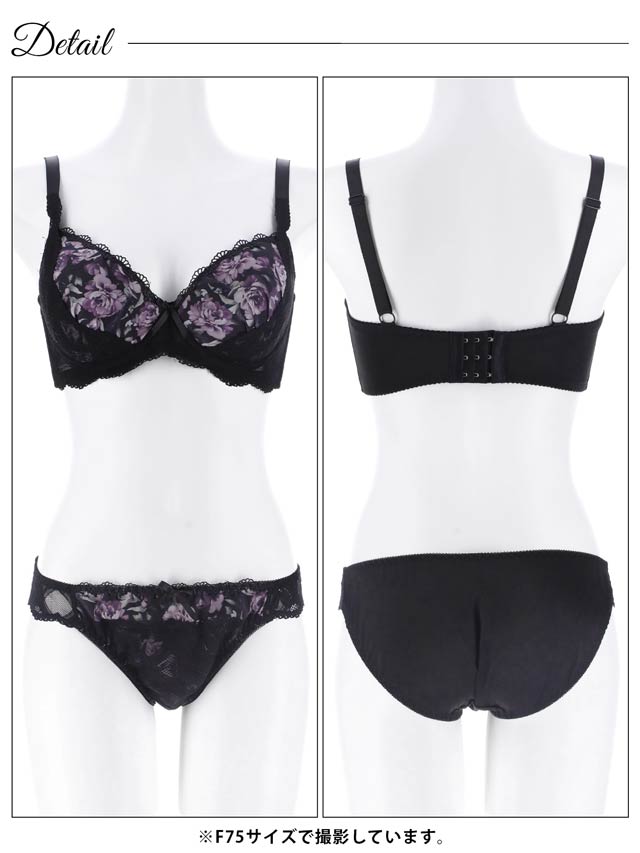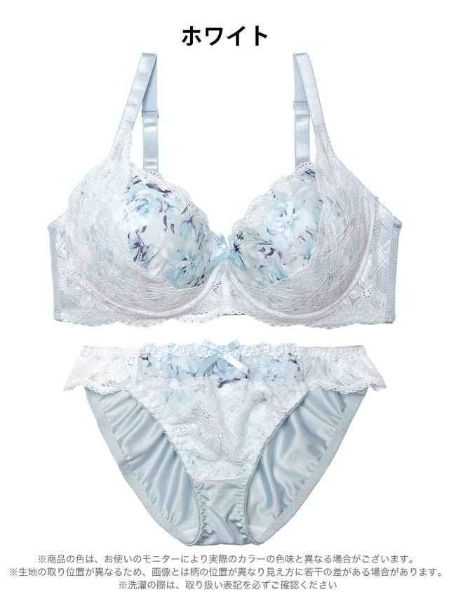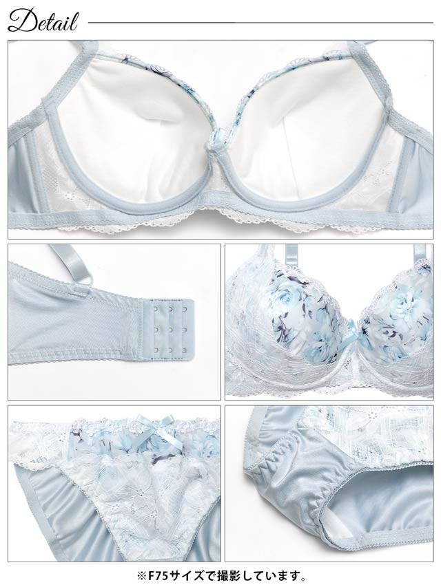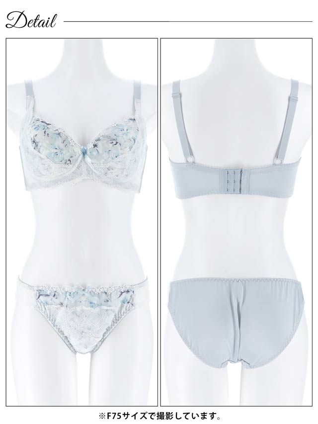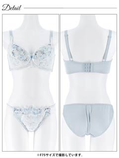 【EFサイズ】ダスティブルームエンブロイダリー育乳脇高ブラジャー&バック透けフルバックショーツ