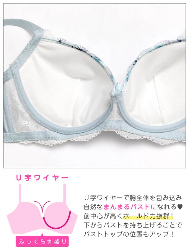ダスティブルームエンブロイダリー育乳脇高ブラジャー&バック透けフルバックショーツ