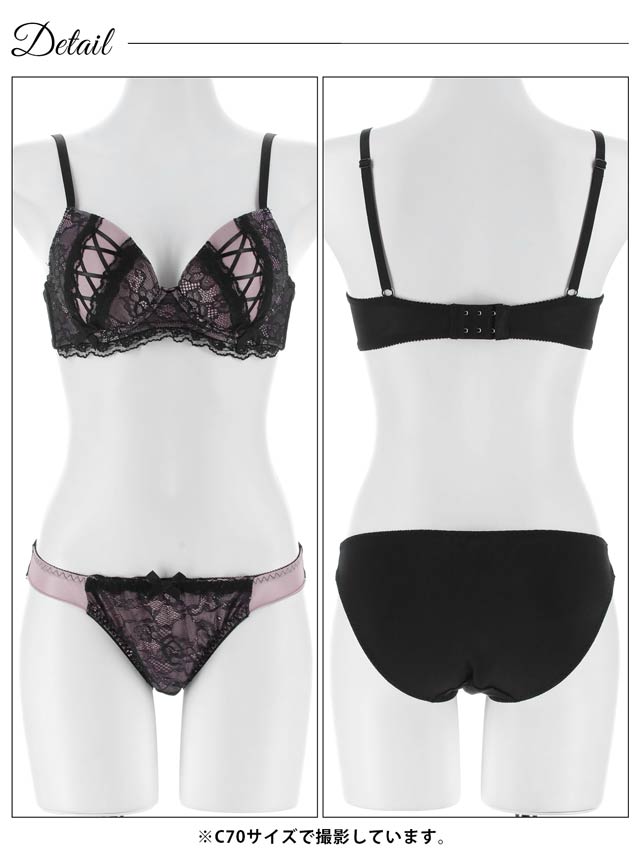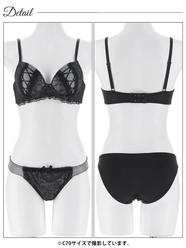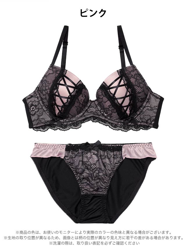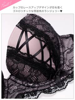 3/27新作!ダークガーリーレースアップブラジャー&フルバックショーツ[激売れ]