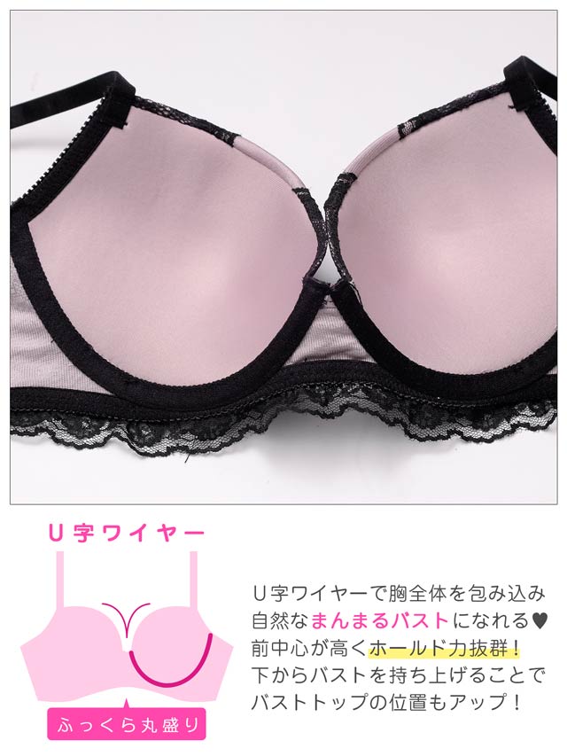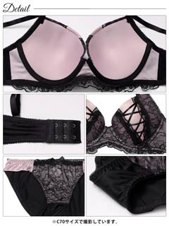 オールレースカットストリング育乳脇高ブラジャー&バック透けフルバックショーツ
