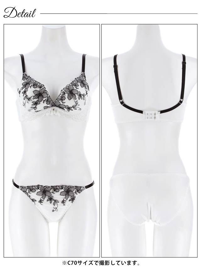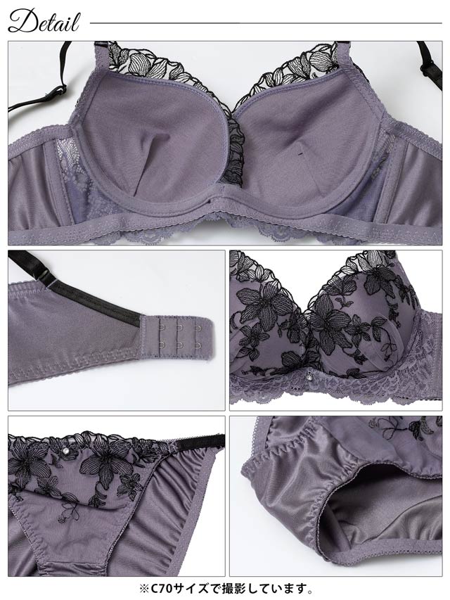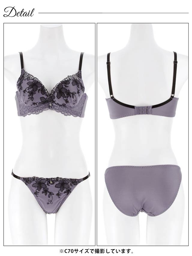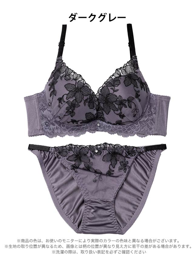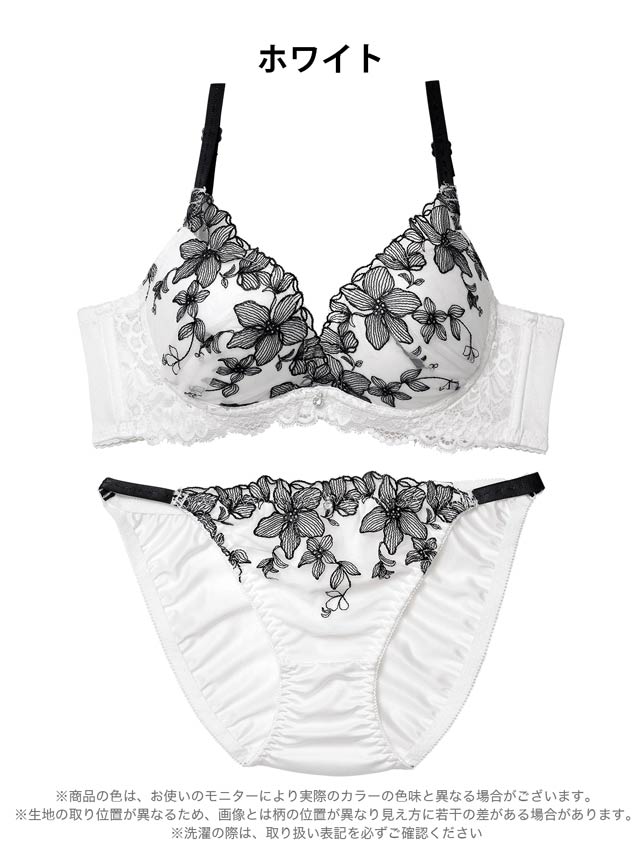 ダスティブルームエンブロイダリー育乳脇高ブラジャー&バック透けフルバックショーツ